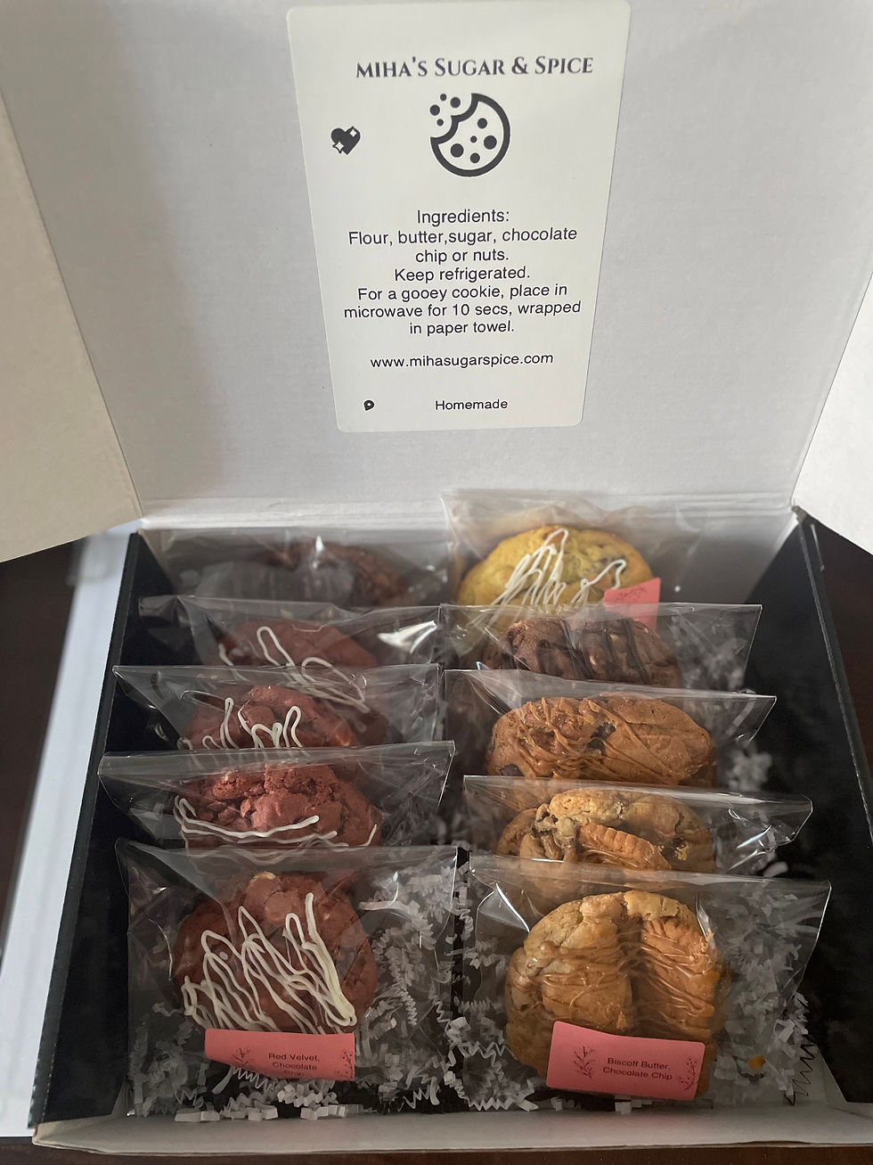 Pack of 3: Red Velvet, Chocolate Chip, Biscoff cookies .